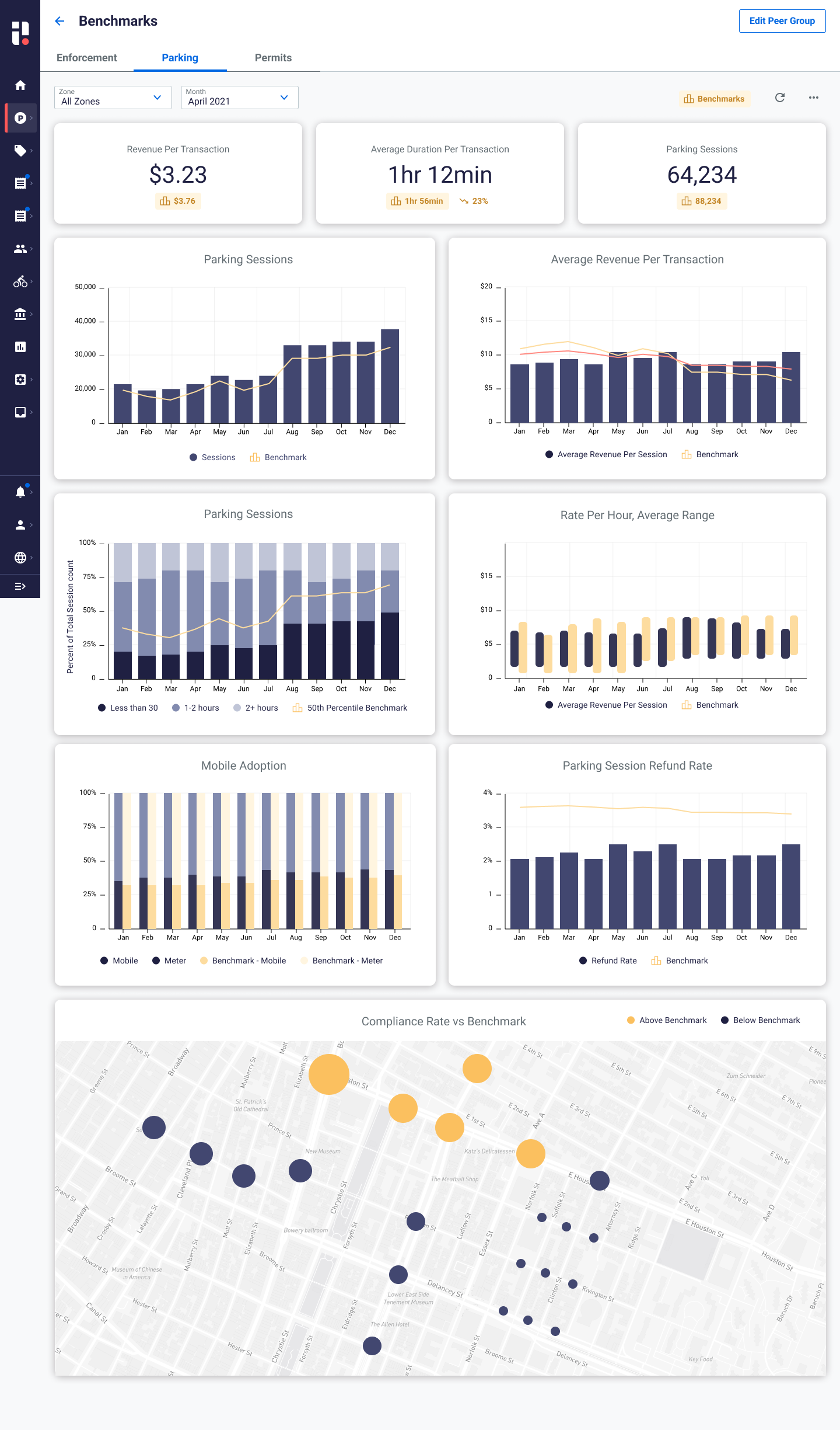 Build evergreen benchmarking reports. Later, we introduced evergreen reports that automatically compared users to peer groups we identified as most similar based on their parking program context.